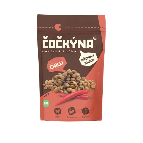 Čočkýna je skvělou alternativou k tradičním snackům. Bez umělých přísad, éček, konzervantů a se složením, kterému rozumíš. Jen čočka, kokosový olej a koření. Nic víc. Snack pro vegany i sportovce Čočkýna je jednoduchý křupavý snack, který je vegan, bez lepku a navíc plný bílkovin a vlákniny. Pochutnají si na něm tak vegetariáni i vegani, cestovatelé i sportovci, děti i rodiče a vlastně každý, kdo si chce smlsnout o něco zdravěji. Tvůj parťák na cesty Čočkýna je tvůj ideální parťák na cesty. Vejde se ti do kapsy, snadno ji přihodíš do batohu i tašky. Ať už jdeš na odpolední procházku, dlouhou túru nebo objevuješ svět. Čočkýna je lehký, výživný snack, který máš vždy po ruce! Křupavost v každém soustu Čočkýna se skvěle hodí do salátů, krémových polévek či tvého oblíbeného jídla. Přidá mu šmrnc a neodolatelnou křupavou chuť. Tabulka nutričních hodnot: