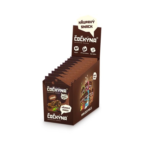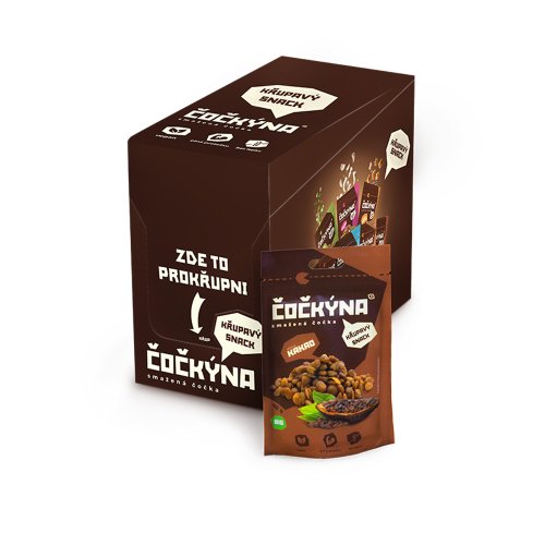 Čočkýna je skvělou alternativou k tradičním snackům. Bez umělých přísad, éček, konzervantů a se složením, kterému rozumíš. Jen čočka, kokosový olej, třtinový cukr, kakao a špětka soli. Nic víc. Snack pro vegany i sportovce Čočkýna je jednoduchý křupavý snack, který je vegan, bez lepku a navíc plný bílkovin a vlákniny. Pochutnají si na něm tak cestovatelé a sportovci, kteří potřebují doplnit cukry, vegani a vegetariáni, či rodiče s dětmi a vlastně každý, kdo si chce smlsnout o malilinko zdravěji. Tvůj parťák na cesty Čočkýna je tvůj ideální parťák na cesty. Vejde se ti do kapsy, snadno ji přihodíš do batohu i tašky. Ať už jdeš na odpolední procházku, dlouhou túru nebo objevuješ svět a potřebuješ doplnit sacharidy, vlákninu a bílkoviny. Čočkýna je lehký, výživný snack, který máš vždy po ruce! Křupavost v každém soustu Čočkýna se skvěle hodí do jogurtů, kaší či tvého oblíbeného dezertu. Přidá mu šmrnc a neodolatelnou křupavou chuť. Tabulka nutričních hodnot: