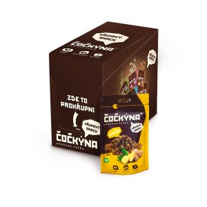 Čočkýna je skvělou alternativou k tradičním snackům. Bez umělých přísad, éček, konzervantů a se složením, kterému rozumíš. Jen čočka, kokosový olej, třtinový cukr, kakao a špětka soli. Nic víc. Snack pro vegany i sportovce Čočkýna je jednoduchý křupavý snack, který je vegan, bez lepku a navíc plný bílkovin a vlákniny. Pochutnají si na něm tak cestovatelé a sportovci, kteří potřebují doplnit cukry, vegani a vegetariáni, či rodiče s dětmi a vlastně každý, kdo si chce smlsnout o malilinko zdravěji. Tvůj parťák na cesty Čočkýna je tvůj ideální parťák na cesty. Vejde se ti do kapsy, snadno ji přihodíš do batohu i tašky. Ať už jdeš na odpolední procházku, dlouhou túru nebo objevuješ svět a potřebuješ doplnit sacharidy, vlákninu a bílkoviny. Čočkýna je lehký, výživný snack, který máš vždy po ruce! Křupavost v každém soustu Čočkýna se skvěle hodí do jogurtů, kaší či tvého oblíbeného dezertu. Přidá mu šmrnc a neodolatelnou křupavou chuť. Tabulka nutričních hodnot: