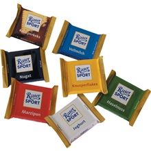 Výtečné mini čokolády v mixu 8 druhů Hmotnost: 1400 g Balení obsahuje 84 ks čokoládek po 16,67 g (příchutě: 7x křupavé sušenky, 14x křupavé vločky, 7x nugát, 14x jemné plnotučné mléko, 7x lískový ořech, …