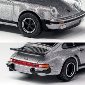 Kovový model autíčka 1975 Porsche 930 Turbo, na volnoběh, s díly, které lze otevřít a/nebo s pohyblivými částmi, s odpružením.V měřítku 1:64, délka: 7,5 cm.