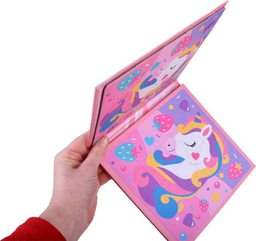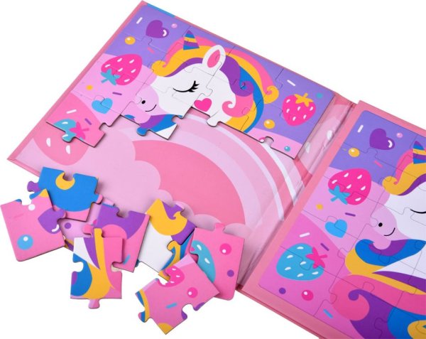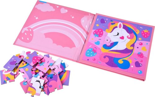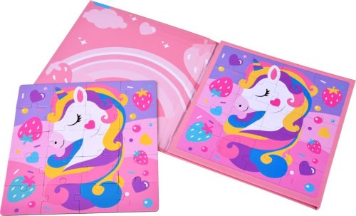 Sada dvou magnetických puzzle s obrázky roztomilých jednorožců.