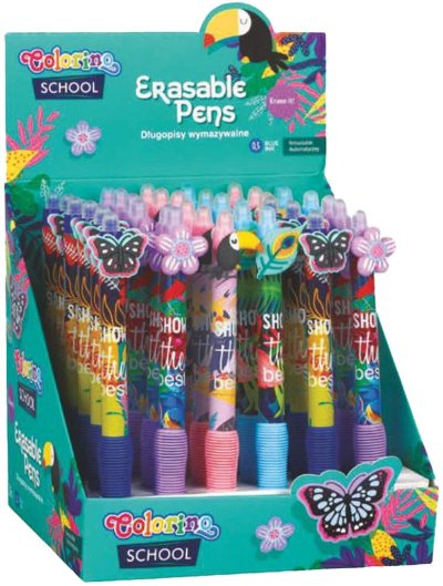 Kolekce gumovatelných per s barevným tělem a roztomilými motivy z divoké džungle. Příjemný pogumovaný grip zajistí pohodlný úchop každému školákovi. • šířka stopy: 0,5 mm • barva náplně: modrá • stiskací mechanika v klipu • 4 barevné motivy • pogumovaný grip