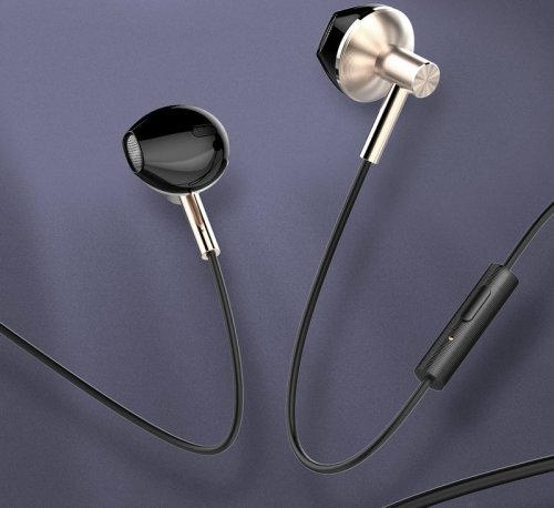 Drátová sluchátka s mikrofonem zaručí plynulé poslechové zážitky a pohodlnou hlasovou komunikaci. Disponují 13mm meniči s vysokým rozsahem poskytujícím čistý a bohatý zvuk nejvyšší kvality. Pomocí tenké membrány reprodukují i ty nejsložitější hudební skladby a zajišťují mnohovrstevnatý detailní a emotivní zvuk. Na samotném kabelu sluchátek se nachází ovládací panel se 3 tlačítky a také kvalitní mikrofon, který zajišťuje, že váš hlas bude během hovoru a vystavení nežádoucímu hluku přenášen s maximální čistotou. Sluchátka se připojují přes 3,5 mm jack.