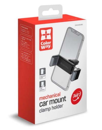Praktický držák pro mobilní telefon určený k upevnění do ventilační mřížky. Nastavení šířky pomocí posuvného mechanismu zaručuje kompatibilitu s téměř jakýmkoli zařízením. Pro nastavení do požadovaného úhlu disponuje kloubem otočným o 360°. Měkká povrchová úprava eliminuje vznik škrábanců a oděrek na těle smartphonu.
