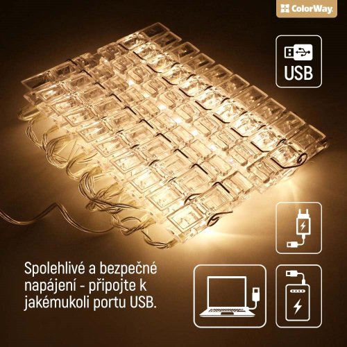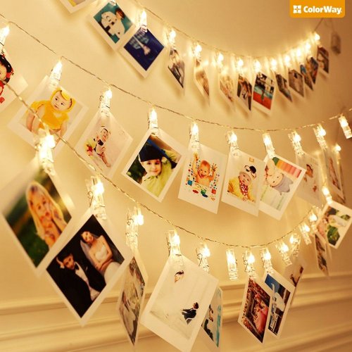 Vytvořte jedinečnou atmosféru díky fotokolíčkům ColorWay a fotografiím. Na šňůře o délce 4.2 metrů je k dispozici 40 kolíčků pro uchycení snímků. Oslavy narozenin, dovolená v zahraničí, zážitky s rodinou, přáteli nebo snímky vašich domácích mazlíčků. Tím vším si můžete vyzdobit váš domov. Tyto klipy pro fotografie disponují stylovým osvětlením, pro napájení slouží AA baterie.