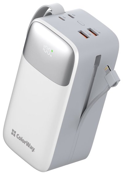 Powerbanka ColorWay je vybavena dvojicí USB portů a také dvěma integrovanými kabely s konektory Lightning a USB-C, díky čemuž je vysoce kompatibilní a umožňuje nabíjení celé řady zařízení, a to i klidně v jeden okamžik. Díky praktickému poutku můžete tento záložní zdroj energie zavěsit například na kliku, domácí věšák, upnout na batoh, tašku nebo přenášet v ruce. Díky kompaktním rozměrům a nízké váze je snadno přenosná a ideální do všech s nulovým nebo omezeným přístupem k elektřině, jako jsou kempy, chaty, stanová městečka na hudebních festivalech apod.