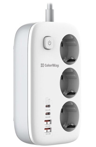 Prodlužovací přívod se třemi Schuko zásuvkami, dvěma USB porty a dvěma USB-C porty. Lze s ním tedy připojit nejen elektrické spotřebiče, ale současně nabíjet až čtyři mobilní zařízení z USB portů. Funkce Auto ID automaticky rozpozná typ připojeného zařízení a určí tak vhodný nabíjecí proud. Mezi podporované nabíjecí protokoly patří PD 2.0/3.0 PPS, Quick Charge 2.0/3.0/4.0+, Apple Fast Charge, Huawei FCP/SCP, Samsung SFC/AFC, VOOC a Xiaomi Turbo charge. Přivod je vybaven praktickým tlačítkem pro zapnutí a vypnutí. Tělo přívodu je vyrobeno ze žáruvzdorného plastu, který odolá teplotám až do 750 °C. Samozřejmostí je uzemnění a přepěťová ochrana.
