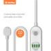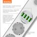 Kompaktní prodlužovací přívod se čtyřmi síťovými zásuvkami 220 V a čtyřmi porty USB 5 V. Můžete s ním tedy připojit nejen elektrické spotřebiče, ale současně nabíjet až 4 mobilní zařízení z portu USB. Přívod také automaticky rozpozná typ připojeného zařízení a sám určí nejlepší nabíjecí proud připojeného zařízení od 0,1 do 2,4 A.
