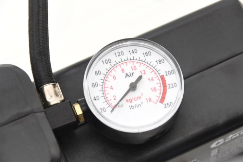 Kompresor je vybavený vestavěným pneuměřičem, který zobrazuje naměřený tlak v několika jednotkách.