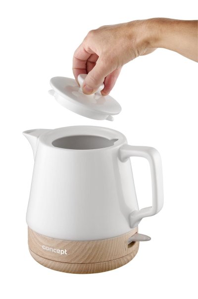 Varná konvice Concept je vyrobena z kvalitní, velmi odolné a zdravotně nezávadné keramiky. Tento materiál vyniká velmi snadnou údržbou a izolačními vlastnostmi, díky kterým udrží vodu dlouho horkou. Keramické víko s praktickým zajištěním proti vypadnutí oceníte při plnění vodou i při údržbě.