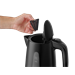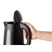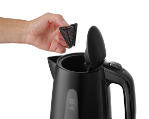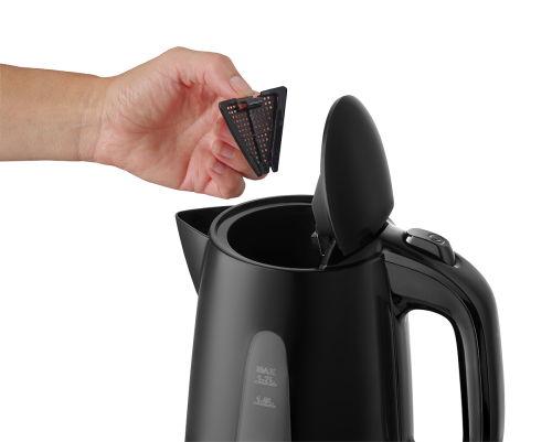 Konvice je opatřena tlačítkem pro snadné otevření víka a velkým plnicím otvorem pro pohodlné plnění vodou. Hladké dno se skrytým topným tělesem zamezuje usazování nečistot. Filtr proti vodním usazeninám je vyjímatelný, takže ho můžete kdykoliv dle potřeby vyčistit. Praktický je i plně otočný podstavec s prostorem pro uschování přebytečného kabelu, na který můžete konvici postavit z jakéhokoliv úhlu.