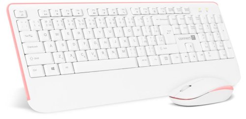 CONNECT IT Combo bezdrátová bílo-růžová klávesnice + myš, (+1x AAA +1x AA baterie zdarma), CZ + SK layout