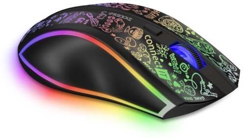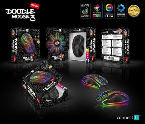 CONNECT IT DOODLE 3 bezdrátová herní myš, rainbow podsvícení, 4800Dpi, ČERNÁ