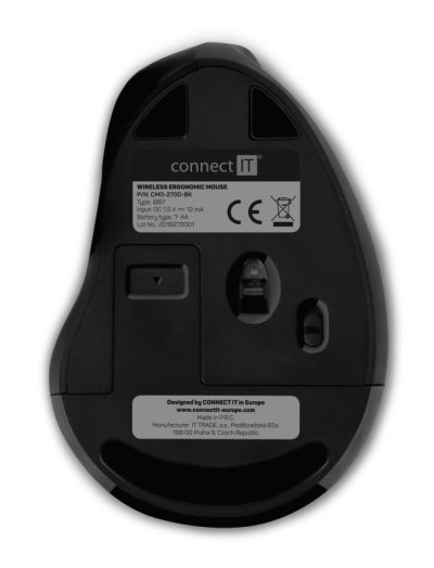 CONNECT IT FOR HEALTH ergonomická vertikální myš, (+ 1x AA baterie zdarma), bezdrátová, ČERNÁ