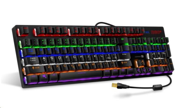 Profesionální mechanická klávesnice NEO+ series pro hráče počítačových her v českém a slovenském layoutu s celkem 22 módy barevného rainbow podsvícení a pětistupňovou regulací intenzity podsvícení. K dispozici je 12 multimediálních kláves.