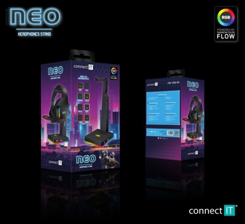 CONNECT IT NEO Stand-It RGB stojánek na sluchátka + USB hub, ČERNÝ