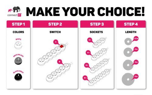 Díky pootočení zásuvek o 45° je možné používat i objemnější napájecí adaptéry nebo úhlové koncovky.