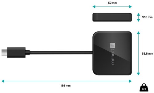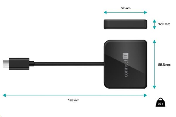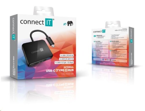 CONNECT IT USB-C hub, 3v1 (USB-C,USB-A,HDMI), externí, ČERNÝ