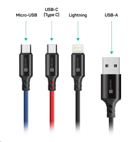 CONNECT IT Wirez 3in1 USB-C & Micro USB & Lightning, 1,2 m