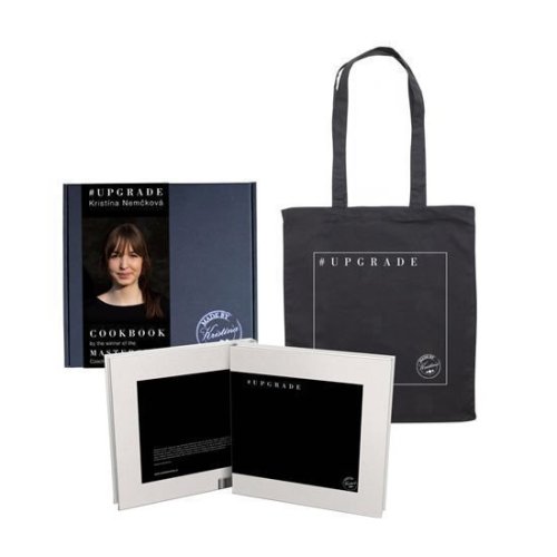 Jsem Kristína Nemčková, nejmladší vítězka soutěže MasterChef na světě a taky autorka kuchařské knihy #UPGRADE plné tradičních, ale i inovativních československých receptů. Dárkové balení obsahuje kuchařku v anglickém jazyce a v balení vás jistě potěší i černá látková taška.Milujete tradiční československá jídla a občas v kuchyni rádi experimentujete? Pochutnáte si na klasických receptech, které vaří naše babičky, ale chutnají vám i moderní jídla? Pak je moje první kuchařská kniha #UPGRADE právě pro vás! Ráda o této knize mluvím jako o rodinném projektu. Na jejím vzniku se podílela celá moje rodina, hlavně babička Pavlínka. Ta připravila klasické československé recepty. Jako třeba tradiční halušky, krémovou svíčkovou nebo ty nejlepší nadýchané buchty. Já jsem se postarala o to, že k tradičním pokrmům vždy najdete i můj přetvořený recept - #UPGRADE. Kuchařka je napsaná tak, aby se v ní našli jak nováčci v kuchyni, tak i zkušenější, kteří se nebojí zkoušet moderní recepty. Naše kuchařka obsahuje 40 babiččiných a 39 mých receptů. Najdete v ní i 12 základních receptů, které vám pomohou zvládnout základy - pořádně silný vývar, jíšku nebo třeba domácí máslo. Dohromady si tedy budete moci uvařit 91 výborných receptů. Babička Pavlína mi byla ve vaření vždy inspirací. Teď může být i vám. Připravila celkem 40 tradičních jídel ze své poctivé kuchyně, včetně jejích triků a rad. Tato jídla jsou perfektní i pro začátečníky – vyzkoušíte si na nich to pravé, poctivé vaření a v kuchyni si začnete být jistější. Moje recepty vždy vychází z tradičních jídel. Jsou jen trochu modernější, nebo jinak poskládané. Babiččiny recepty se pro mě staly odrazovým můstkem pro nové tvoření. Každý můj recept je rozdělený do jednotlivých komponentů. Díky tomu si můžete i vy skládat úplně nová jídla! Perfektní pro všechny, kteří chtějí začít v kuchyni trochu více experimentovat.