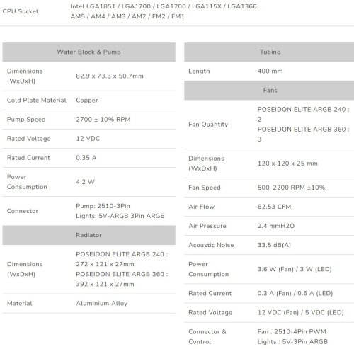 Poseidon Elite ARGB cooler comes complete with all the mounting hardware you need for modern platforms, supporting the latest AMD and Intel CPU sockets. Installation is a matter of mere minutes!
