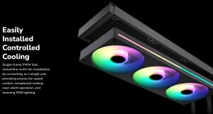 - Jednorámové ventilátory PWM zajišťují efektivní připojení, přesně řízené chlazení a živé RGB osvětlení.