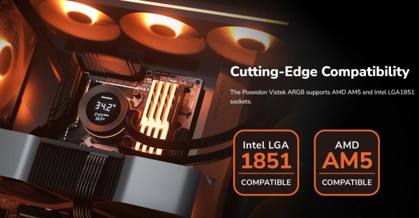 Poseidon Vistek ARGB podporuje patice AMD AM5 a Intel LGA1851.