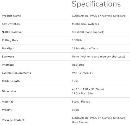 Klávesnice Ultimus EX je vybavena zdvojenými klávesami a mechanickými spínači, které umožňují bezchybné, rychlé a přesné hraní a okamžitou reakcí.