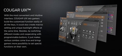 12 programovatelných tlačítek myši DUALBLADER je plně konfigurovatelných prostřednictvím systému COUGAR UIX, který hráčům umožňuje nastavit většinu ze tří profilů na desce, nastavit makra a zkratky a ještě více sekundárních funkcí pro dosažení maximálního herního výkonu. DUALBLADER je rozhodně nejlepší volbou pro jakoukoli hru!