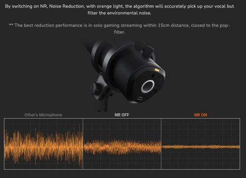 By switching on NR, Noise Reduction, with orange light, the algorithm will accurately pick up your vocal but filter the environmental noise.