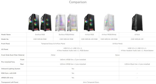 Airface má perforovaný přední panel pro zajištění silného proudění vzduchu. Jedná se o 230 mm širokou konstrukci mid-tower, která nabízí dostatek místa pro chladič CPU, kabeláž, kompatibilitu se základní deskou E-ATX a Hi-end grafické karty až do 330 mm. Ve srovnání s předchozími herními skříněmi je to upgrade ve všech aspektech.