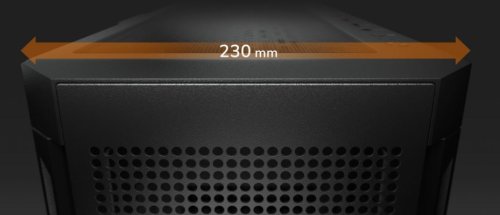 230 mm široký design Airface poskytuje mnohem vetší vnitřní prostor s lepším chladicím výkonem a správou kabelů. Určitě se do nej vejde základní deska E-ATX, 330mm grafická karta, dva 3,5” HDD a tri 2,5” SSD, což umožnuje nejextrémnější sestavení systému.