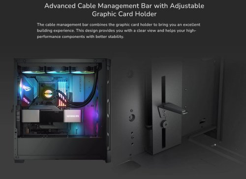 Lišta pro kabely v kombinaci s držákem grafické karty vám přináší vynikající zážitek ze sestavování.