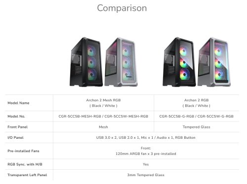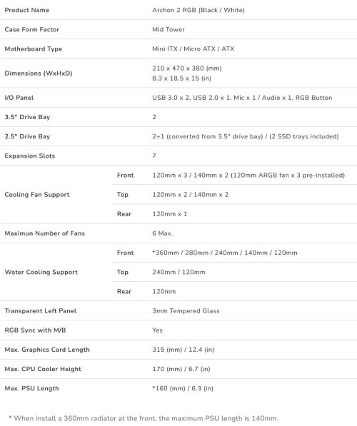 Archon 2 RGB sports an attractive and elegant design. With included three ARGB fans, the tempered glass front panel showcases stunning lighting view. The integrated lighting button allows it to display amazing lighting effects. Mighty support for up a 360mm radiator, a 315mm graphic card, and a 170mm CPU cooler deliver superior value for you.