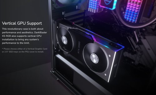 The integrated lighting button, with built-in LED controller, allows DarkBlader X5 RGB to display amazing lighting effects. It’s also adaptable with any compatible motherboards’ 5V ARGB connection for system-wide lighting synchronization. The powerful lights come out of a stylish panel and the reflective surroundings helps reinforce the RGB effects.