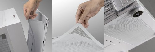 Prachové kryty na třech větraných stranách účinně zabraňují vnikání prachu a udržují vaše komponenty čisté. Horní a pravý boční filtr se připevňují magneticky, což usnadňuje jejich vyjmutí a údržbu.