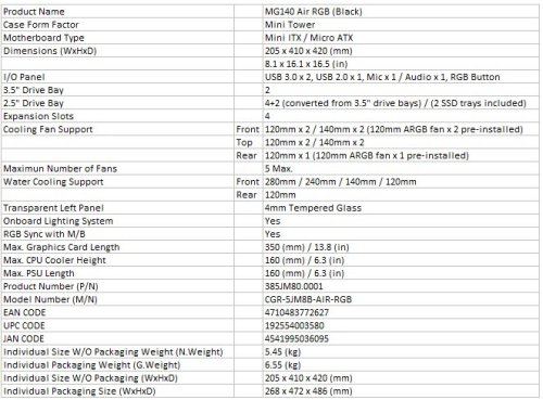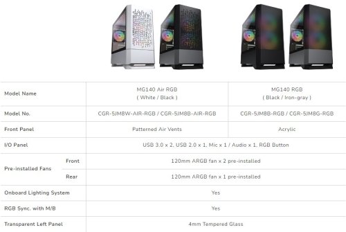 MG140 Air RGB’s compact layout allows you to install five fans, a 280mm water cooling radiator, and a 160mm CPU cooler. This immense cooling potential will enable you to choose components freely.