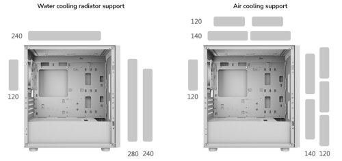 - Podporuje volbu 280mm (max.) vodního chlazení nebo 160mm (max.) vzduchového chlazení