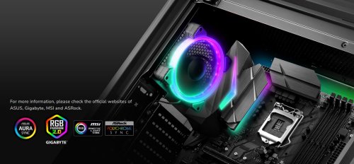 COUGAR VORTEX VK120 cooling fan supports ASUS AURA SYNC, GIGABYTE RGB Fusion, MSI Mystic Light Sync and ASRock Polychrome software. Players can control the lighting mode with the motherboard application software to achieve full lighting synchronization without using additional program.