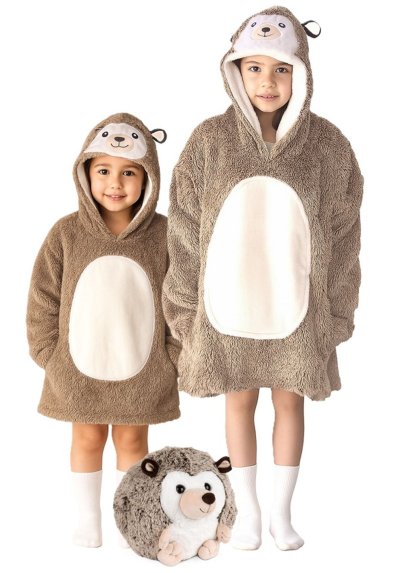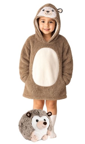 Velká mikina s kapucí s motivem zvířátka, která plní funkci teploučké, měkoučké a nadýchané deky, která zahřeje při každé příležitosti a navíc děti potěší svým hravým a líbivým designem. Vnitřek mikiny byl vyroben z hřejivého nadýchaného sherpa fleecu a lícová strana ze super měkkého hebkého materiálu, používaného na výrobu těch nejměkčích dek. Všechny mikiny z této řady mají i velikou přední kapsu, ve které se dají krásně ohřát studené ruce. Každé dítě se v ní bude jistě cítit pohodlně, ať už doma na gauči při sledování televize nebo odpočinku, nebo jen tak při hraní si, kdy ho nijak nebude omezovat v pohybu. Velmi praktická je ale i při stanování či jiných outdoorových aktivitách nebo jen tak při venkovním posezení na zahradě v chladnějším počasí. Tato mikina a deka v jednom je krásným a praktickým dárkem. V nabídce Cozy Noxxiez najdete v mnoha případech ve stejném designu i hřejivý plyšový polštář 3 v 1, obří hřejivý pantofel, nebo hřejivou deku s kapucí se zvířátkem a tlapkovými kapsami a můžete mít tak celou zahřívací sadu perfektně sladěnou.