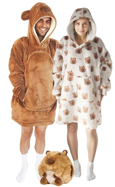 Cozy Noxxiez CH364 Kapybara - hřejivá televizní mikinová deka s kapucí pro teenagery a dospělé
