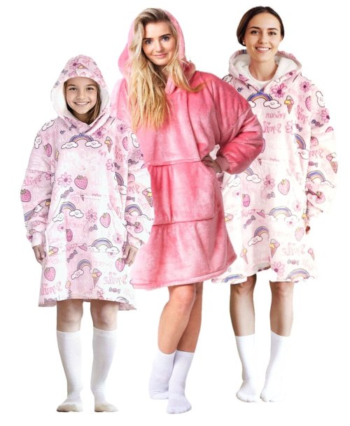 Cozy Noxxiez CH373 Sladkosti potisk - hřejivá televizní mikinová deka s kapucí pro teenagery a dospělé