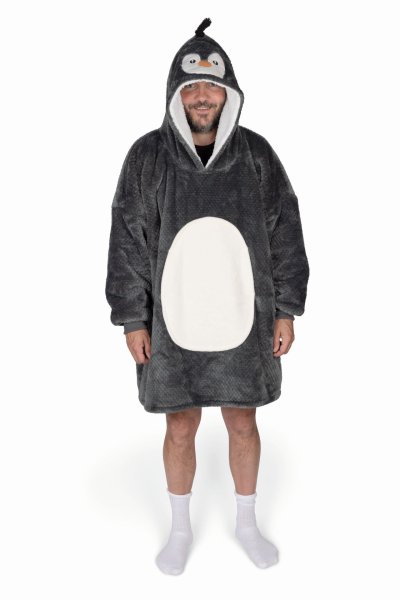 Velká mikina s kapucí s motivem zvířátka, která plní funkci teploučké, měkoučké a nadýchané deky, jež zahřeje při každé příležitosti. Vnitřek mikiny byl vyroben z hřejivého nadýchaného sherpa fleecu a lícová strana ze super měkkého hebkého materiálu, používaného na výrobu těch nejměkčích dek. Všechny mikiny z této řady mají i velikou přední kapsu, ve které se dají krásně ohřát studené ruce. Každý se v ní bude jistě cítit pohodlně, ať už doma na gauči při sledování televize, čtení knížky, nebo jiném druhu odpočinku, kdy ho nijak nebude omezovat v pohybu. Dobré využití se najde třeba i při práci na PC, kdy se člověk opravdu moc nezahřeje. Velmi praktická je ale i při stanování či jiných outdoorových aktivitách nebo jen tak při venkovním posezení na zahradě v chladnějším počasí. Tato mikina a deka v jednom od značky Cozy Noxxiez je krásným a praktickým dárkem pro ženy i muže, díky vtipným potiskům, nebo variantě bez nich. Stručný popis a doplňující informace: • praktická mikina a deka v jednom • velká kapuce • velká přední kapsa na zahřátí rukou • super měkký a nadýchaný hřejivý materiál pro maximální teplo a pohodlí • vnitřní i venkovní využití (gaučink, práce na PC, stanování atd.) • Rozměry: délka ke kolenům 95 cm, délka rukávu 50 cm, obvod hrudníku 170 cm • Velikost kapuce: výška 43 cm, šířka 39 cm • Velikost kapsy 42 x 25 cm • Materiál: flanel a sherpa fleece, vyrobené z polyesteru • Prát v pračce na 30 °C, sušit v sušičce na nízkou teplotu a ihned vyndat • Navrženo v Nizozemsku