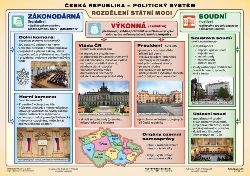 Oboustranná naučná tabulky se na přední straně zaměřuje na přehledné znázornění politického systému a rozdělení státní moci v ČR, formu realizace a její institucionální zakotvení ve státě. Druhá strana tabulky přináší charakteristiku volebního práva a volebního systému. Přibližuje pravidla volby prezidenta republiky, volby do Poslanecké sněmovny a Senátu Parlamentu ČR, zastupitelstev obcí, zastupitelstev krajů a Evropského parlamentu.