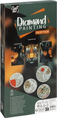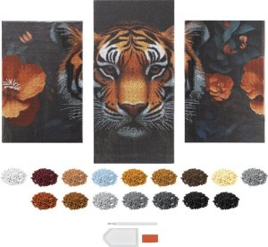 Kreativní sada Diamond Painting Triptych ti umožní vytvořit dechberoucí třídílný obraz s motivem šelmy. Každé plátno je potištěné speciálním vzorem s lepicí vrstvou, do které snadno umístíš barevné diamantové kamínky podle přiložené legendy. Výsledek tvoří krásný třpytivý obraz, který zaujme na každé stěně. Diamantové malování je ideální činnost pro děti i dospělé – podporuje soustředění, trpělivost a jemnou motoriku. Je to skvělá forma relaxace, u které si odpočineš a zároveň vytvoříš jedinečnou dekoraci. Výhody sady