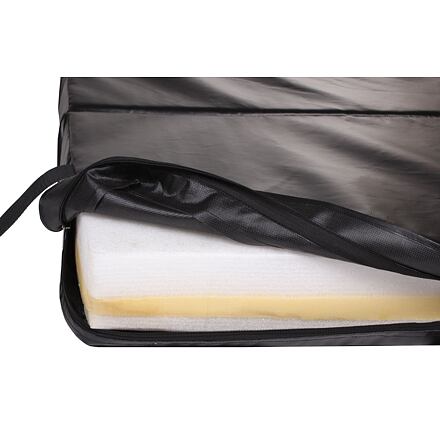 Pokud hledáte nejlepší žíněnku pro víceúčelové využití, například pro gymnastiku, bojové sporty, pro vnitřní i venkovní použití, doporučujeme vám čtyřdílnou skládací žíněnku Gipfel Crash-Mat, při jejíž výrobě byly použity pouze materiály nejvyšší kvality. Dopadová žíněnka Gipfel Crash-Mat využívá jedinečný, perfektně funkční třívrstvý systém odpružení v podobě horní vrstvy (tl. 4 cm) z polyetylenové pěny s uzavřenou buněčnou strukturou, která zajistí rovnoměrné rozložení hmotnosti padající osoby po povrchu podložky, střední vrstvy (tl. 5 cm) z polyuretanové pěny s otevřenou buněčnou strukturou, která absorbuje energii padající osoby a tenké spodní vrstvy (tl. 1 cm) z polyetylenové pěny s uzavřenou buněčnou strukturou, která chrání střední, nejdůležitější vrstvu před opotřebením. Vnější plášť dopadové žíněnky Gipfel Crash-Mat je vyrobený z protiskluzové, otěruvzdorné a voděodolné laminované PVC tkaniny (tl. 1 mm), jejíž součástí jsou i dvě robustní nylonové rukojeti pro snazší manipulaci. Čtyřdílná skládací žíněnka Gipfel Crash-Mat má hmotnost cca 7,5 kg, v rozloženém stavu má rozměr (D x Š x V) 200 x 100 x 10 cm, složená má rozměr (D x Š x V) 100 x 50 x 40 cm a bezpečnostní certifikaci EN1177:2009 a UIAA 161, která mj. stanovuje nejvyšší míru bezpečnosti při prvním pádu na hlavu HIC (Head Injury Criterion) 400. Žíněnka Gipfel Crash-Mat musí být používána s náležitou rozvahou a s ohledem na doporučenou maximální výšku pádu. Doporučená maximální výška pádu pro podložku včetně spoje typu A je 2400 mm a doporučená maximální výška pádu pro spoje tvaru V je 1900 mm (střed celé plochy žíněnky).