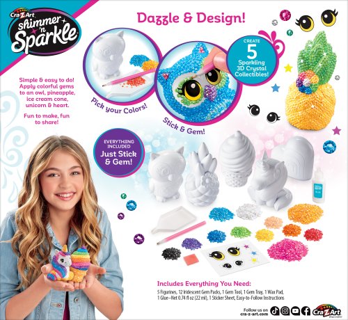 Ozdob si 3D odlitky dle své fantazie. Balení obsahuje 5 odlitků, lepidlo, barevné drahokamy, štětec… Vyrob pro své kamarády krásný třpytivý dárek.