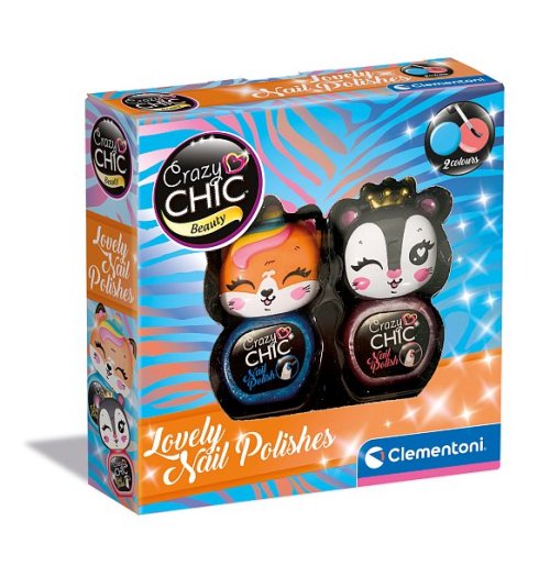 Do kolekce Lovely řady Crazy Chic byla přidána nová sada laků na nehty. Každé roztomilé zvířátko představuje jednu barvu laku na nehty pro vytvoření super elegantních nehtů.  Obsahuje: 2 laky na nehty v různých barvách, abyste si mohli vytvořit nehtovou kresbu podle vlastního stylu a rozvíjet tak kreativitu a manuální zručnost. Sladká zvířátka nosí malou zlatou korunku nebo mají různobarevný roh, stejně jako ostatní zvířátka z řady Lovely Crazy Chic, která je třeba nasbírat. Laky jsou testovány tak, aby si s nimi malé holčičky mohly hrát a bavit se zcela bezpečně, a jsou odstranitelné třením bez použití rozpouštědla.