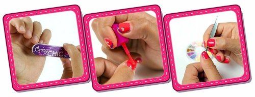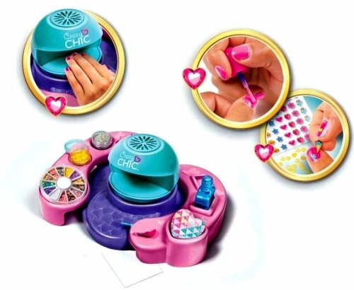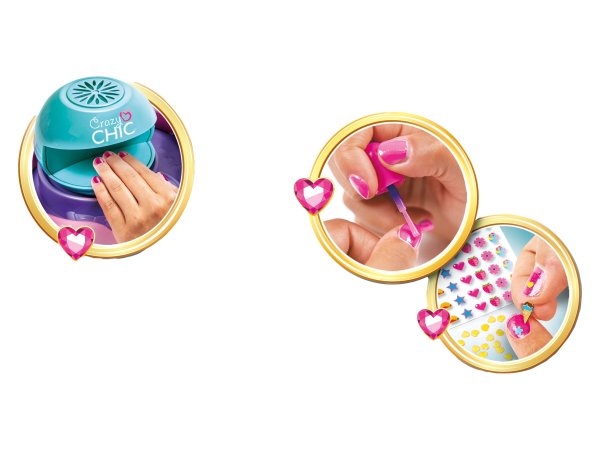 Pořiďte si sadu Crazy Chic Make up obsahující moderní produkty pro zdobení nehtů. Součástí balení jsou bezpečné laky na nehty pro děti, ozdoby na nehty, třpytky a sušička na nehty.